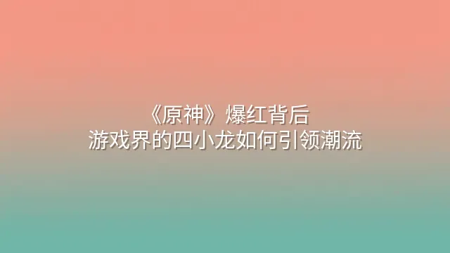 《原神》爆红背后:游戏界的四小龙如何引领潮流