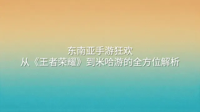 随着移动互联网的迅速发展,东南亚地区已经成为全球手游市场的热点。本文将带你深入了解该地区的热门游戏,包括《王者荣耀》和米哈游旗下的多款游戏,并探讨这些游戏为何如此受欢迎。