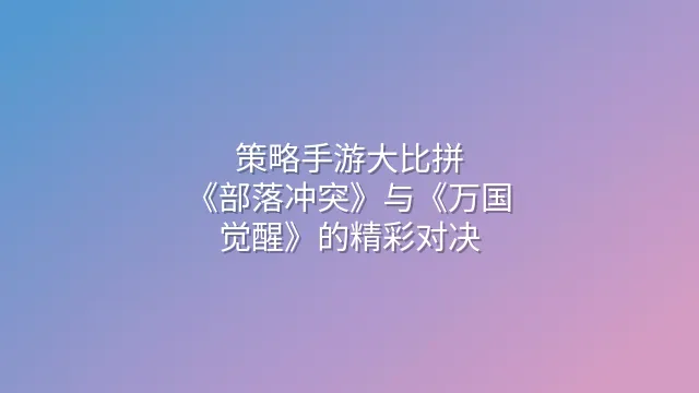 在众多策略手游中,《部落冲突》和《万国觉醒》无疑是佼佼者。它们不仅提供了丰富的多人联机合作体验,还让玩家沉浸在紧张刺激的游戏世界中。本文将深入探讨这两款游戏的特点,帮你找到最适合你的那一款。