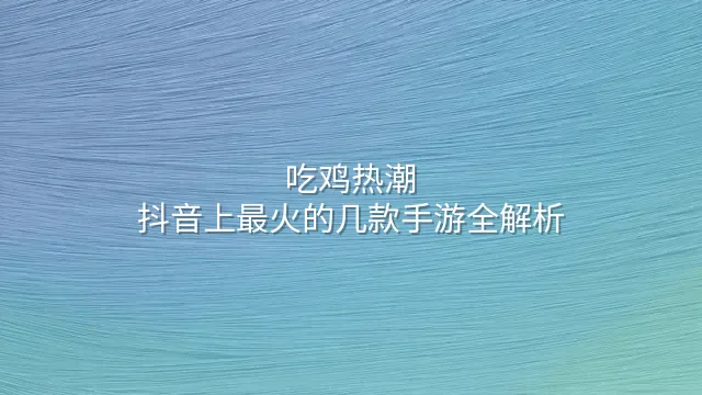 吃鸡手游大逃杀:抖音上的爆款游戏全解析