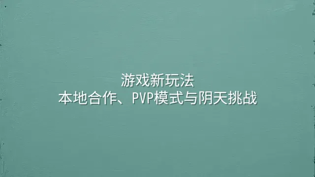 游戏新玩法:本地合作、PVP模式与阴天挑战