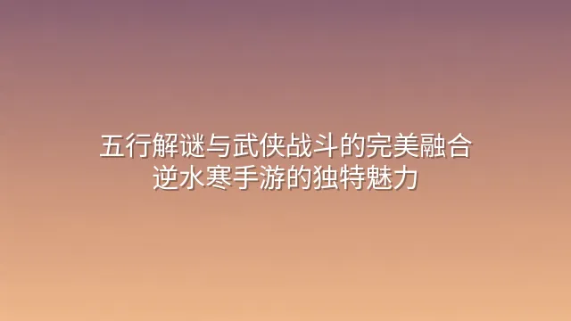 在众多国产游戏中,逆水寒手游以其独特的玩法和深厚的文化底蕴脱颖而出。这款游戏巧妙地将五行解谜与武侠战斗结合在一起,不仅让玩家沉浸在古色古香的世界中,还能感受到紧张刺激的游戏体验。本文将深入探讨这一创新玩法的魅力所在。