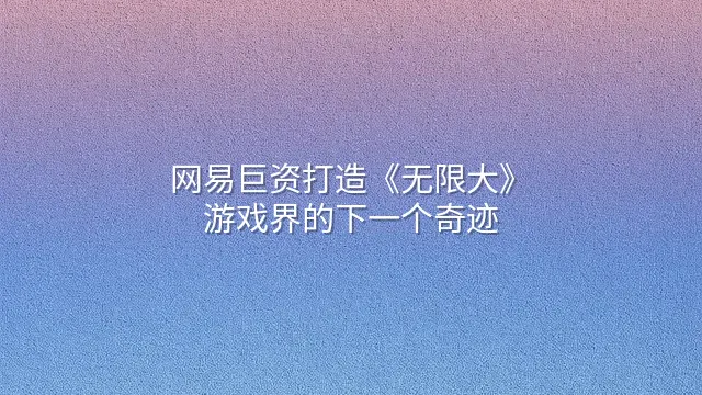 网易宣布将投入巨额资源开发新作《无限大》,这款游戏有望成为游戏界的下一个奇迹。本文将深入探讨这款游戏的背景、特点以及它可能带来的影响。