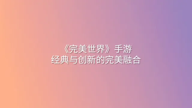 《完美世界》手游不仅继承了原作的经典玩法,还加入了大量创新元素,为玩家带来全新的游戏体验。本文将深入探讨这些变化,并分析它们如何使这款游戏更加吸引人。
