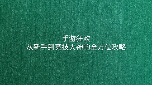 手游狂欢:从新手到竞技大神的全方位攻略