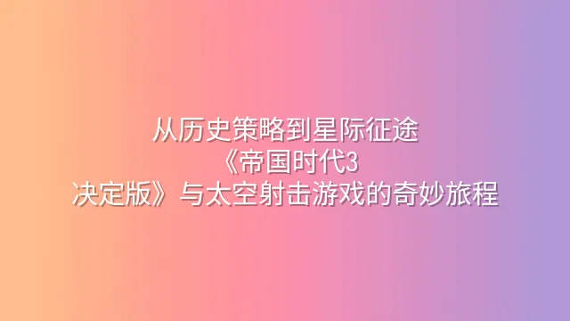 从古罗马的辉煌到未来的星际征途,电子游戏带我们穿越时空。本文将带你从《帝国时代3:决定版》的历史策略世界出发,探索它与太空射击大作之间的奇妙联系,看看这两类截然不同的游戏如何在我们的娱乐生活中交织出独特的体验。